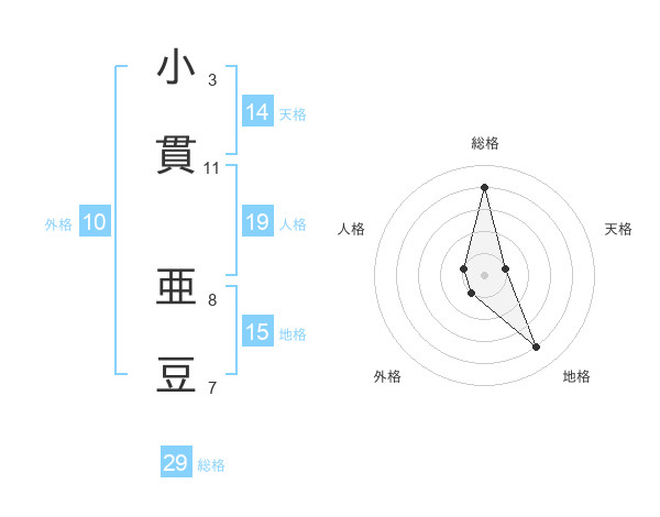 小貫 亜豆さんの総格は29画の4点!