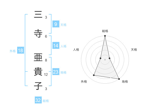 三寺 亜貴子さんの総格は32画の5点!