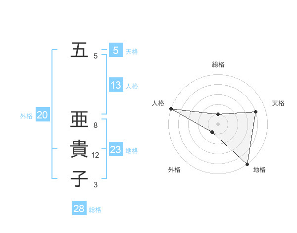 五 亜貴子さんの総格は28画の1点!