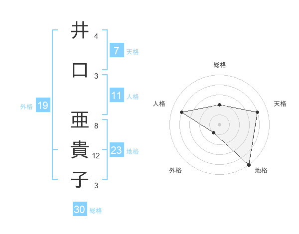 井口 亜貴子さんの総格は30画の2点!