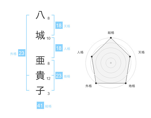 八城 亜貴子さんの天格は18画の4点!