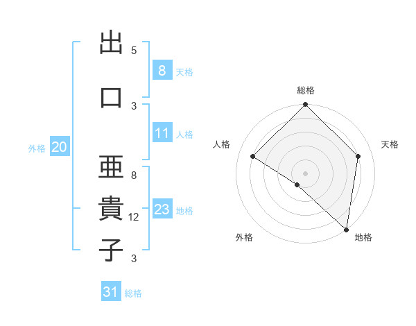 出口 亜貴子さんの総格は31画の5点!
