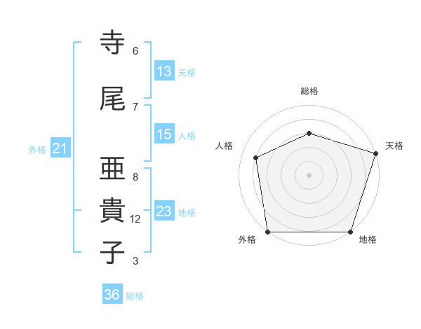 寺尾 亜貴子さんの天格は13画の5点!