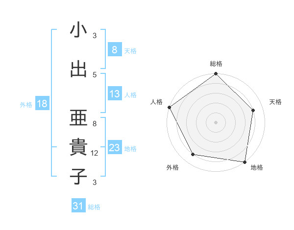 小出 亜貴子さんを姓名の画数から五運を鑑定