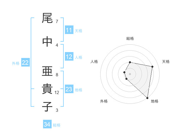 尾中 亜貴子さんを姓名の画数から五運を鑑定
