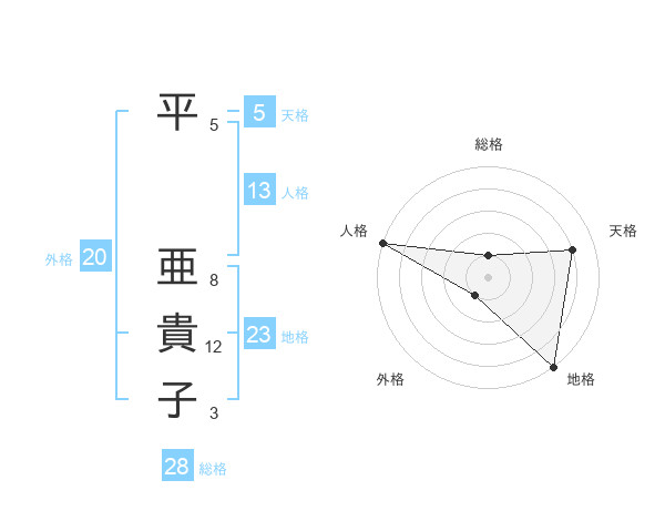 平 亜貴子さんを姓名の画数から五運を鑑定