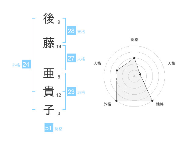 後藤 亜貴子さんの総格は51画の3点!