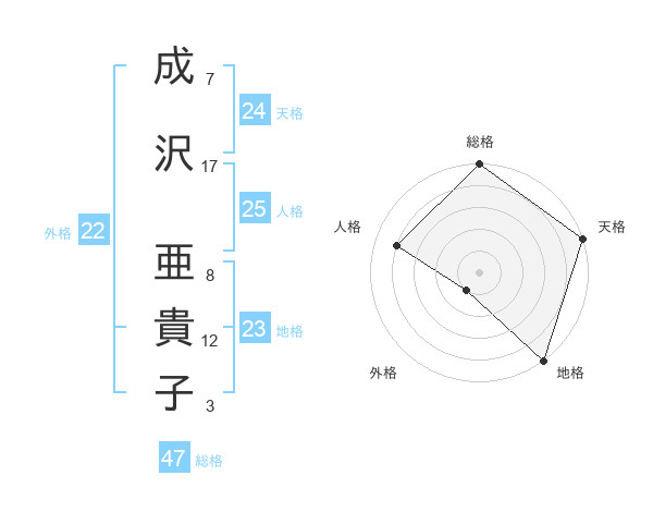 成沢 亜貴子さんの総格は47画の5点!
