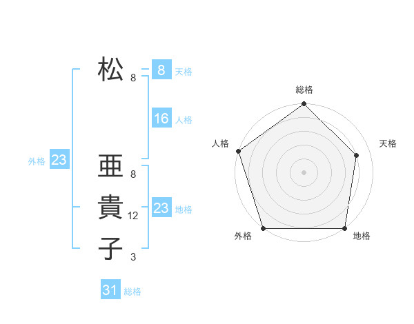 松 亜貴子さんの総格は31画の5点!