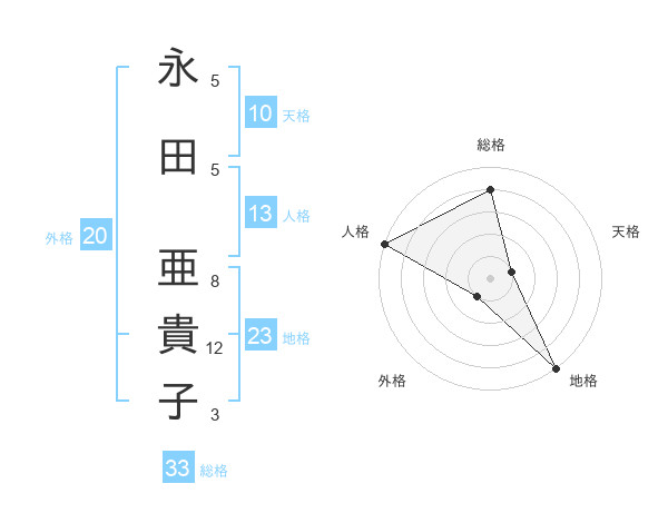 永田 亜貴子さんを姓名の画数から五運を鑑定