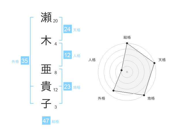 瀬木 亜貴子さんを姓名の画数から五運を鑑定