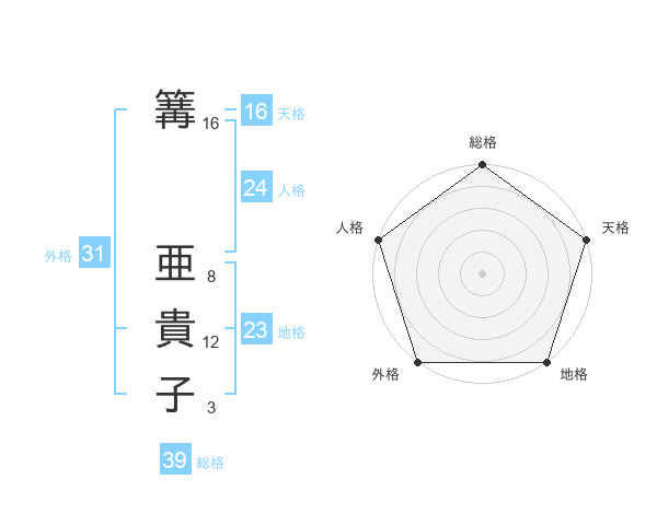 篝 亜貴子さんの総格は39画の5点!
