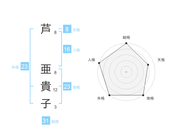芦 亜貴子さんの総格は31画の5点!