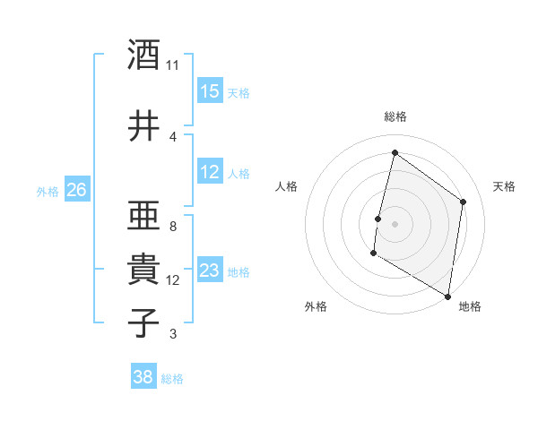 酒井 亜貴子さんの総格は38画の4点!