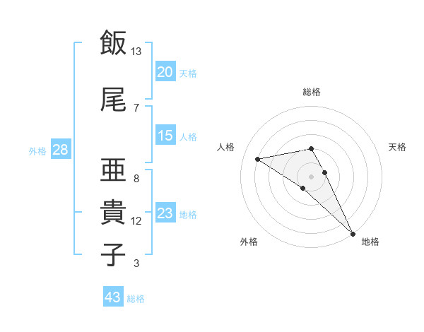 飯尾 亜貴子さんの天格は20画の1点!
