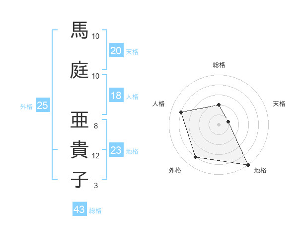 馬庭 亜貴子さんの天格は20画の1点!