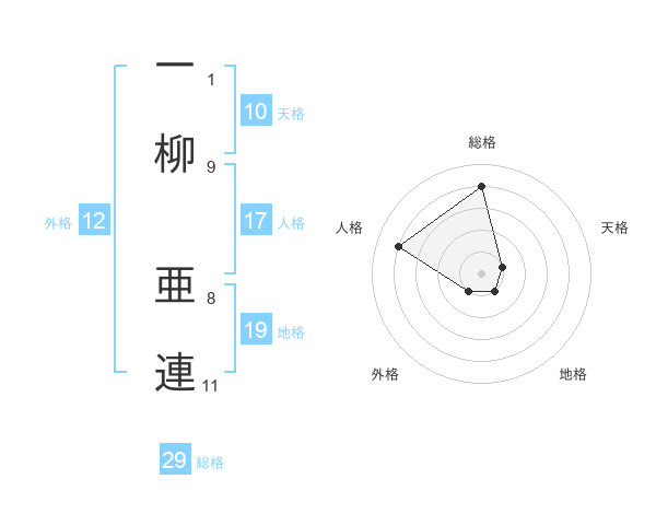 一柳 亜連さんの総格は29画の4点!