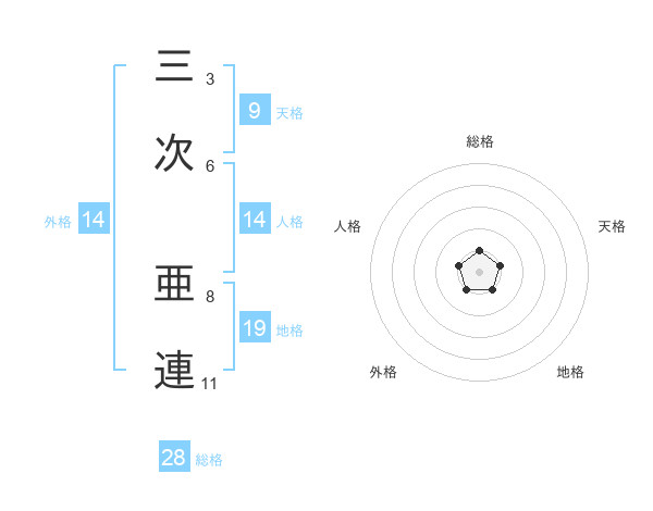 三次 亜連さんの総格は28画の1点!