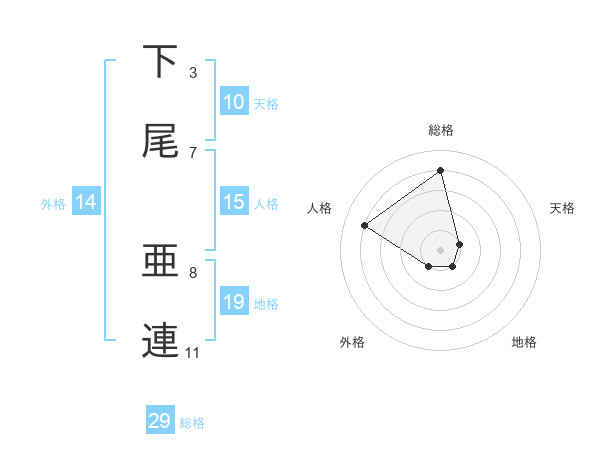 下尾 亜連さんの総格は29画の4点!