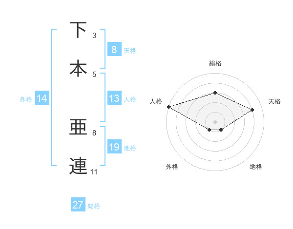 下本 亜連さんの天格は8画の4点!