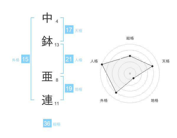 中鉢 亜連さんを姓名の画数から五運を鑑定