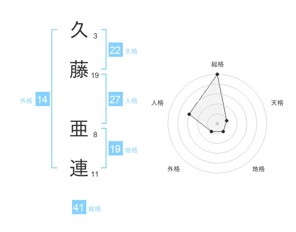 久藤 亜連さんを姓名の画数から五運を鑑定