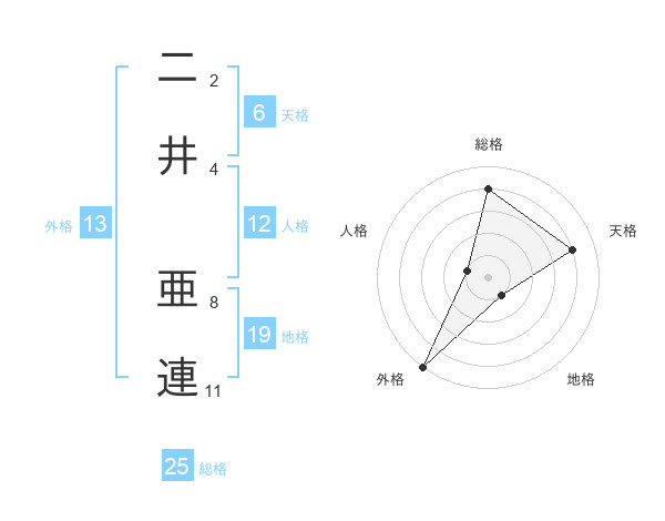 二井 亜連さんの総格は25画の4点!