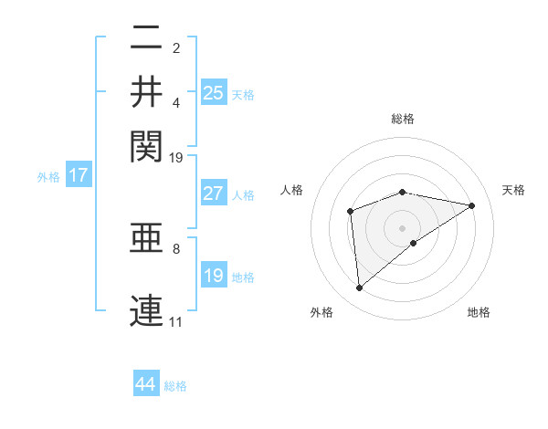 二井関 亜連さんを姓名の画数から五運を鑑定