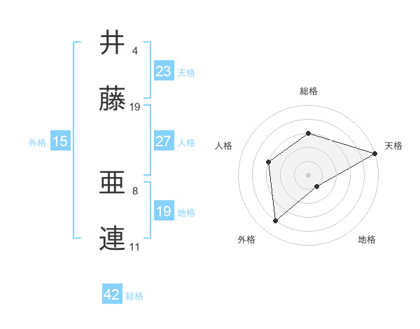 井藤 亜連さんを姓名の画数から五運を鑑定