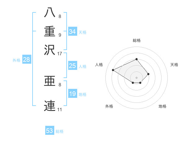 八重沢 亜連さんを姓名の画数から五運を鑑定