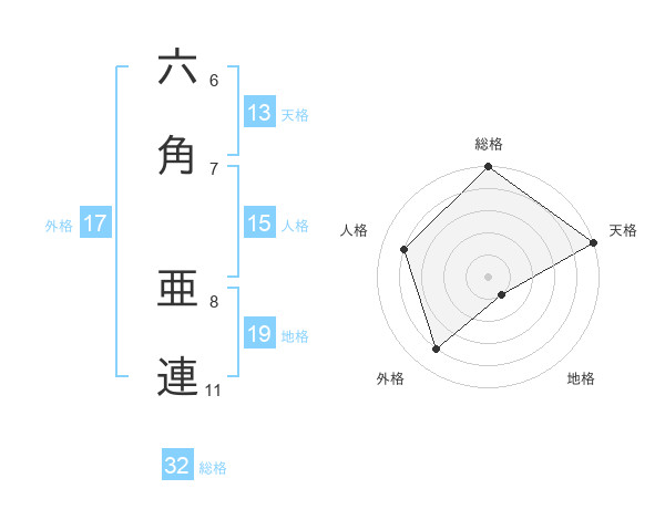 六角 亜連さんの総格は32画の5点!