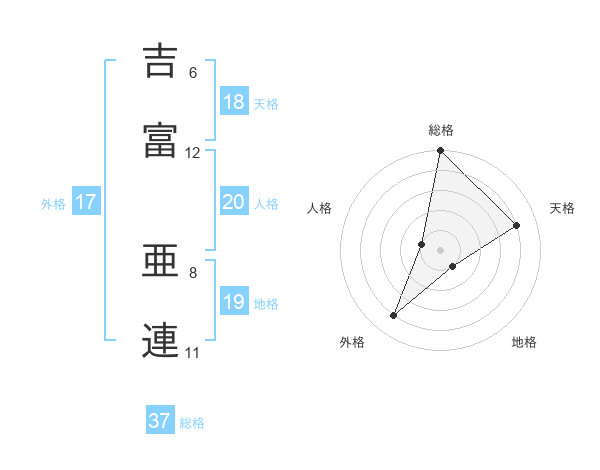 吉富 亜連さんを姓名の画数から五運を鑑定