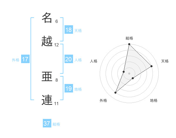 名越 亜連さんの天格は18画の4点!