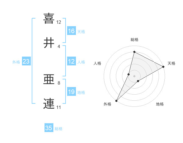 喜井 亜連さんの外格は23画の5点!