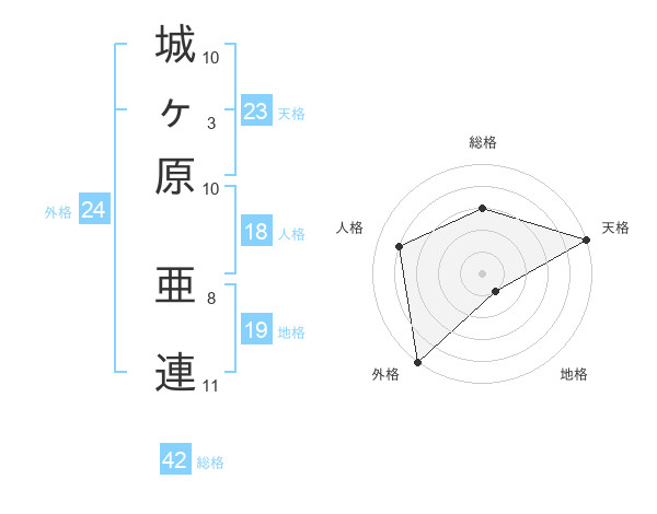 城ヶ原 亜連さんの総格は42画の3点!