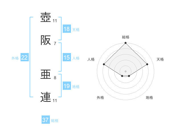 壺阪 亜連さんの総格は37画の5点!