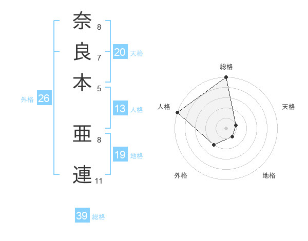 奈良本 亜連さんの総格は39画の5点!