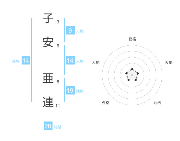 子安 亜連さんの総格は28画の1点!
