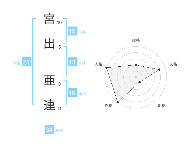 宮出 亜連さんを姓名の画数から五運を鑑定
