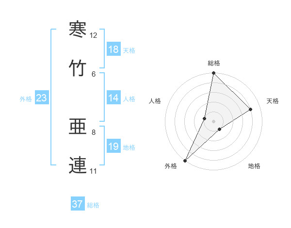 寒竹 亜連さんの総格は37画の5点!