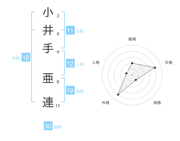 小井手 亜連さんを姓名の画数から五運を鑑定