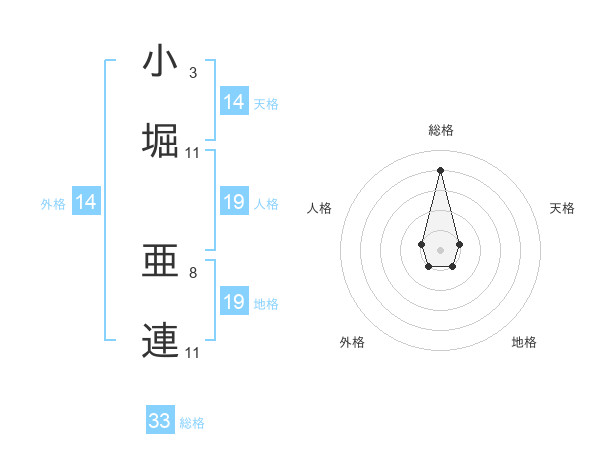 小堀 亜連さんの天格は14画の1点!