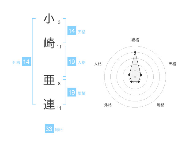 小崎 亜連さんの総格は33画の4点!