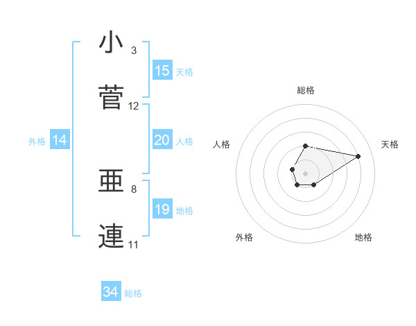 小菅 亜連さんを姓名の画数から五運を鑑定
