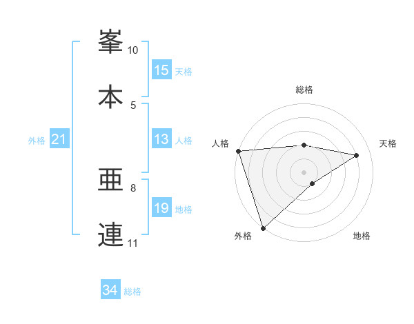 峯本 亜連さんの外格は21画の5点!