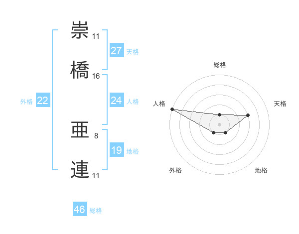 崇橋 亜連さんを姓名の画数から五運を鑑定