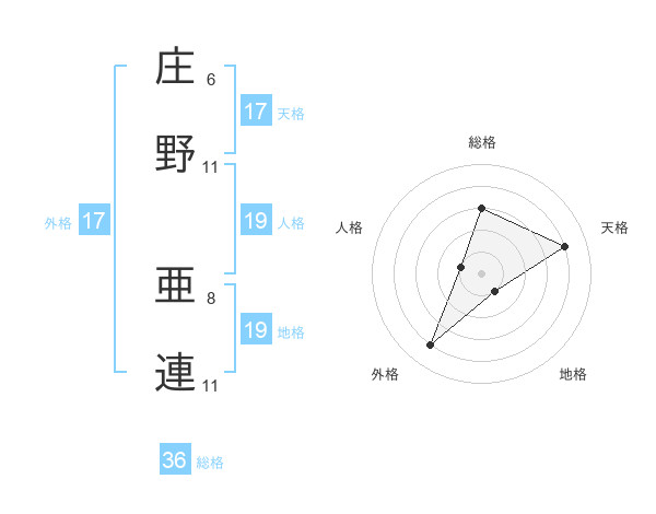 庄野 亜連さんの天格は17画の4点!