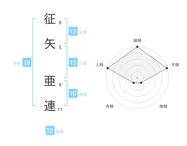 征矢 亜連さんを姓名の画数から五運を鑑定