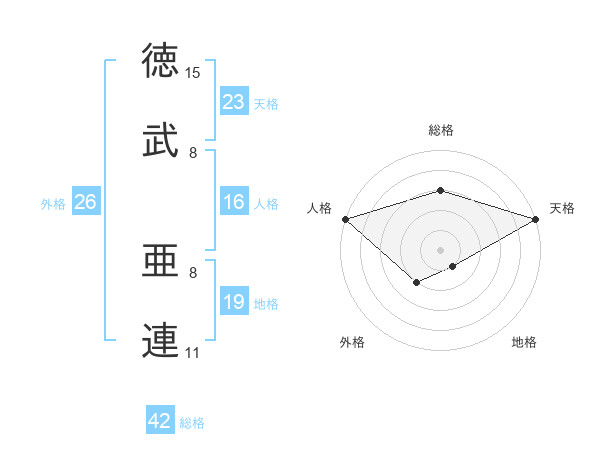 徳武 亜連さんを姓名の画数から五運を鑑定