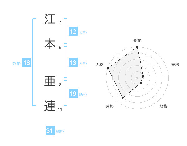 江本 亜連さんの総格は31画の5点!